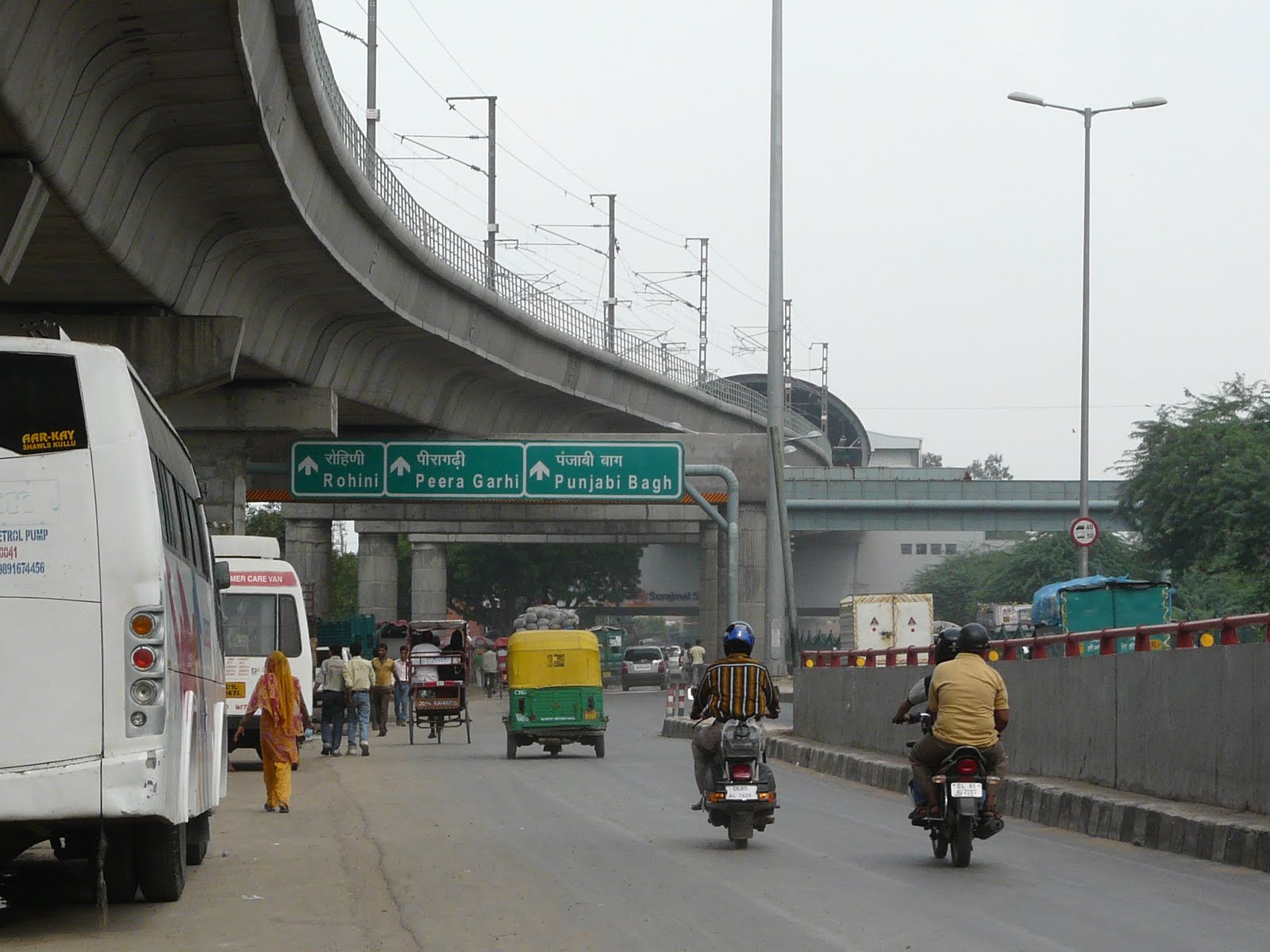 Yamuna Bank station to the left and the intersection of Vikas Marg and Link Road to the right